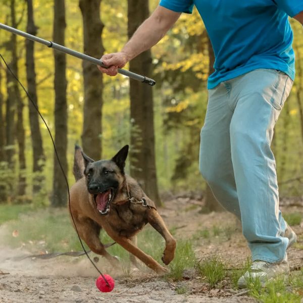 Onze zelf ontwikkelde flirtpole (uitgedacht binnen de hondentraining van de Special Forces) is de perfecte keuze voor honden. Deze flirtpole is uitschuifbaar van 75 tot 130 centimeter, voorzien van een stevig koord en wordt geleverd met bal.